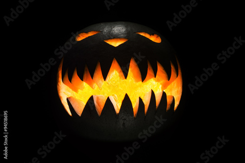 © tavrox, Fototapeta premium Spooky pumpkin in dark, isolated on black background