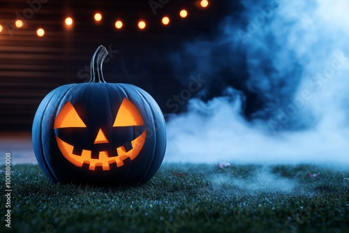 Naklejka premium Spooky Pumpkin in Foggy Yard for Halloween Celebration