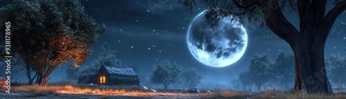 © Puttharak, Fototapeta premium Spooky safari camp in a haunted wilderness on Halloween night