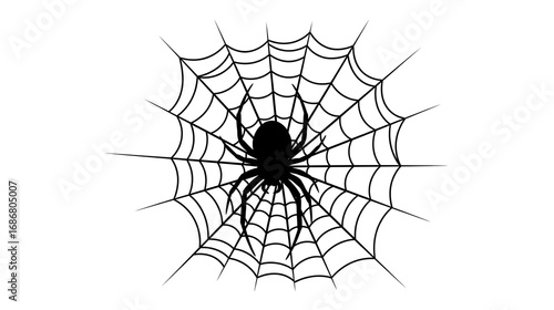 Fototapeta premium Spooky Spider Web with Spider Silhouette, Isolated on White