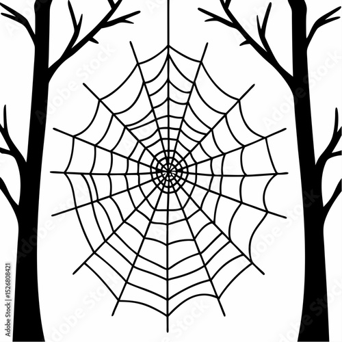 Fototapeta premium Spooky Spiderweb Halloween Illustration Silhouette Design with Bare Trees
