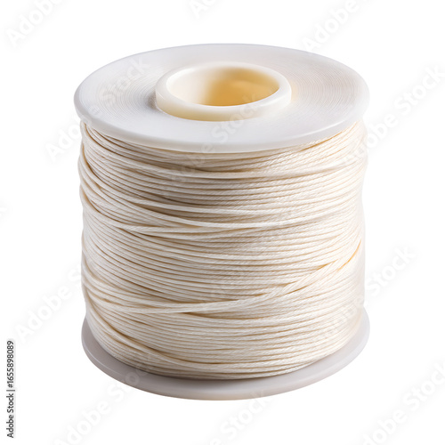 Obraz premium Spool of beige thread for sewing and crafting isolated on transparent background