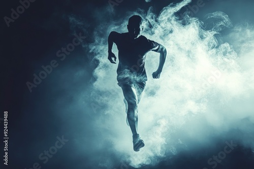 © MUdaylah, Naklejka premium Sport dramatic backgrounds. Runner. Isolated scene with generative ai