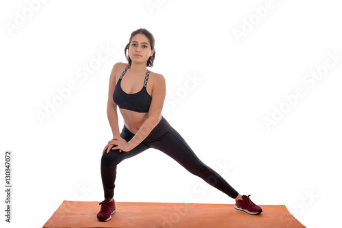 Obraz premium Sport girl doing yoga isolated on white background