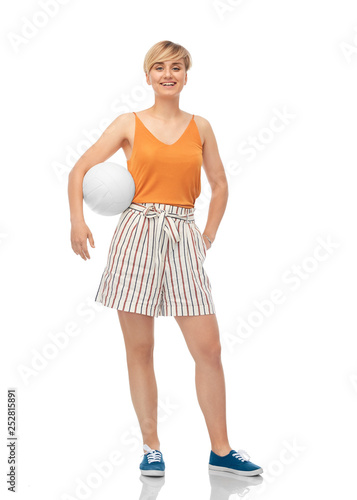 Fototapeta premium sport, leisure and people concept - smiling teenage girl with volleyball over white background