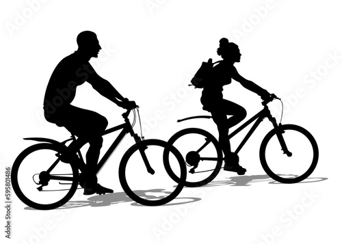 © Николай Григорьев, Obraz premium Sport people whit bike on white background