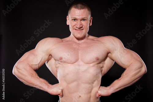 Fototapeta premium Sport the athlete bodybuilder shows off his muscles