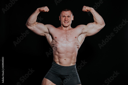 Fototapeta premium Sport the athlete bodybuilder shows off his muscles