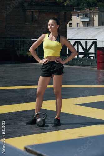 Fototapeta premium Sport woman in sportswear after fitness workout on street