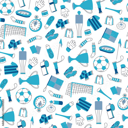 Fototapeta premium Sports pattern with soccer / football symbols in modern flat style.