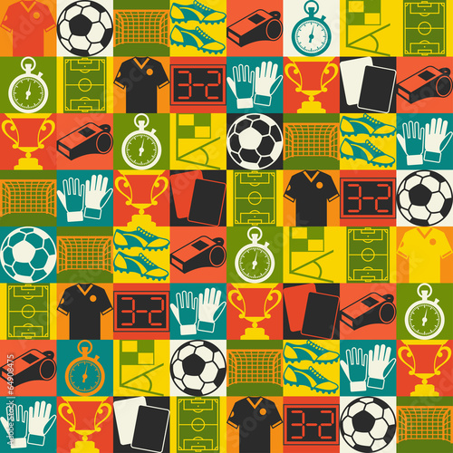 Fototapeta premium Sports seamless pattern with soccer (football) icons.