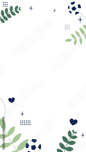 Obraz premium Sports vector border is showing soccer balls, leaves, hearts, stars and...