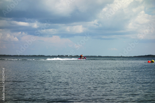 © tonysk, Obraz premium Sports water scooter ride on the lake