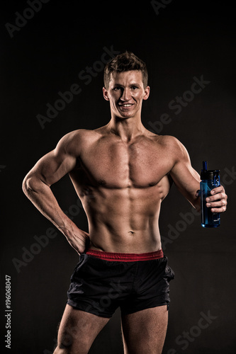 Fototapeta premium Sportsman with drinking water, fit torso, body