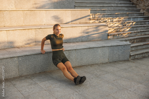Fototapeta premium Sportswoman Doing Workout Outdoor