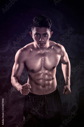© Creativa Images, Fototapeta premium Sporty man doing run exercises in the studio
