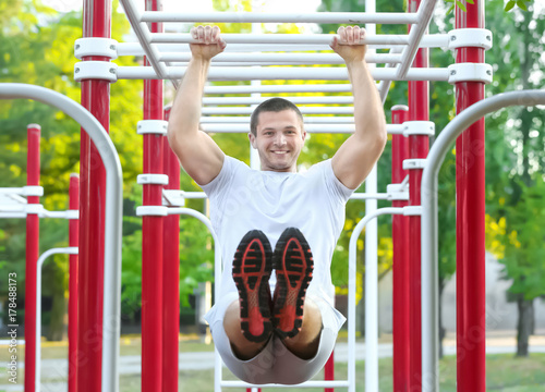 Obraz premium Sporty young man training outdoors