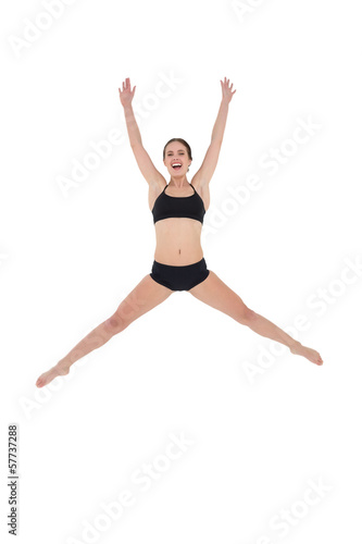 © lightwavemedia, Obraz premium Sporty young woman jumping isolated on white background