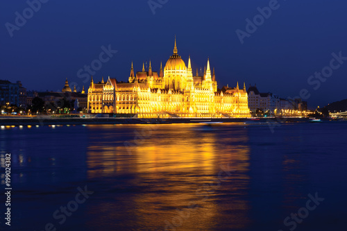 Obraz premium Spotlighted Parliament building in Budapest at night