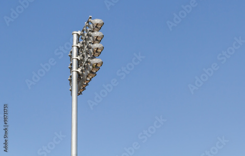 Fototapeta premium Spotlights soccer stadium with blue sky