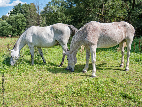 © rdonar, Fototapeta premium Spotted appaloosa horses. White and brown dotted horse