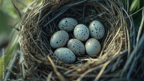 © jambulart, Obraz premium Spotted eggs in a bird nest.