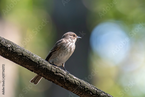Fototapeta premium Spotted Flycatcher ( Muscicapa striata) sitting on the branch in the forest.