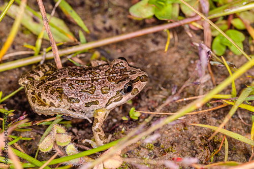 Fototapeta premium Spotted Grass Frog juvenile exploring on land