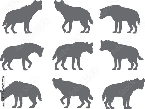 Naklejka premium Spotted hyena silhouettes various poses wildlife africa