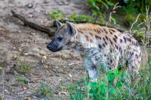 Naklejka premium Spotted Hyenas in nature,close up.. Carnivore, creature.