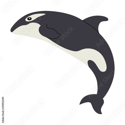 © Bro Vector, Fototapeta premium Spotted killer whale. Cute arctic animal cartoon character vector illustration. Polar bear, penguin, seal, hare, owl, killer whale, fauna of North Pole isolated on white