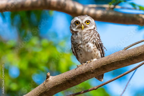 © phichak, Obraz premium Spotted Owlet perching on tree looking at camera