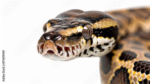 Obraz premium Spotted python against a white backdrop