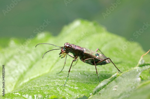 © zhang yongxin, Fototapeta premium Spotted tiger beetles inhabit wild plants in North China