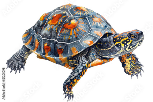 Fototapeta premium Spotted turtle, Pastel-colored, in hand-drawn style, watercolor, isolated on...