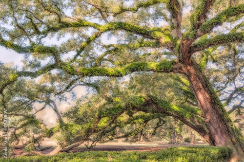 Fototapeta premium Sprawling oak tree with moss, in Oak Alley, Louisiana, USA