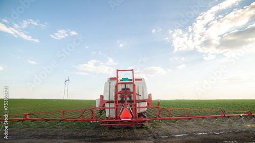 © Vesna, Fototapeta premium Spraying pesticides at soy bean fields
