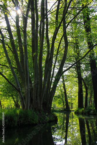 Obraz premium Spreewald, Fließ, Reflektion im Wasser, Landschaft