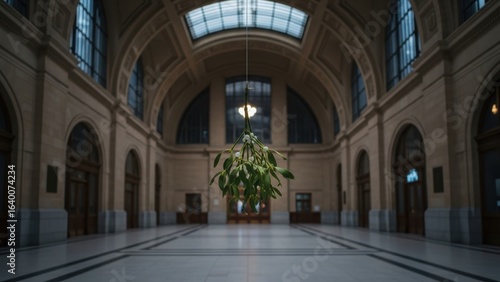 © AudaX, Fototapeta premium Sprig of mistletoe in a large, empty building.