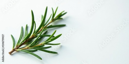© vilavanh, Fototapeta premium Sprig of rosemary and pine branches on a white surface, plant, herbal, natural elements