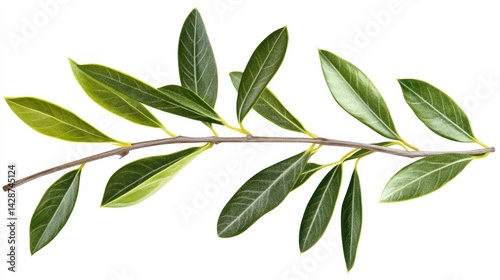 © sablengjago, Fototapeta premium Sprig of vibrant green leaves with visible stem and veins, isolated on white background.