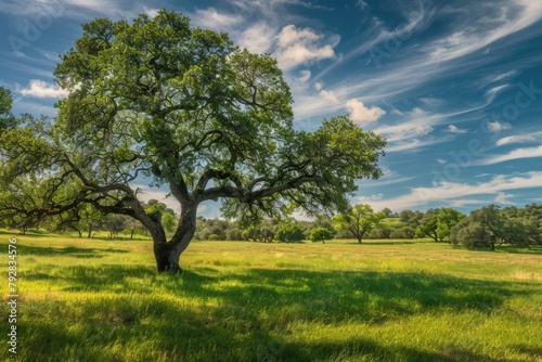 © Serhii, Fototapeta premium Spring Almond Field Landscape in Nature Park with Blue Sky and Green Grass