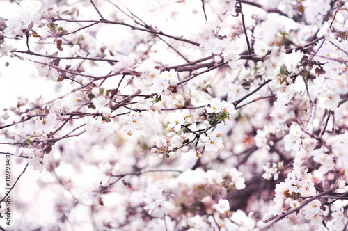 Fototapeta premium Spring apple bloom, springtime flower blossom background, pastel and soft...