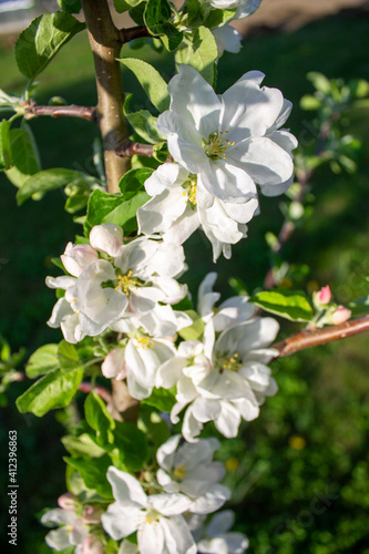 Fototapeta premium Spring apple tree flowers in the garden