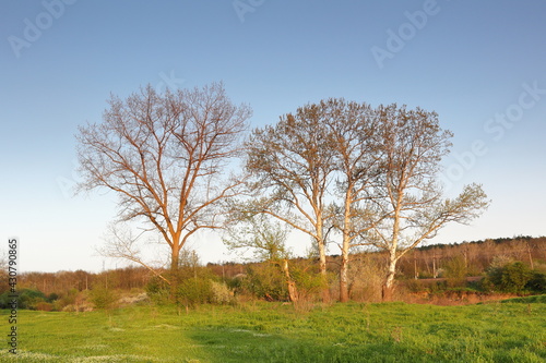 © Константин Ковалевск, Obraz premium spring aspen at sunset against the blue sky