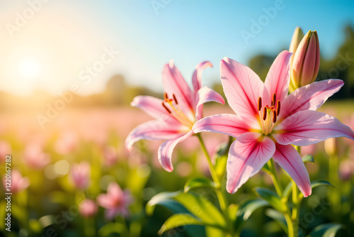 © cyishu, Fototapeta premium Spring Awakening, Lilies Blooming in the Warm Sunshine