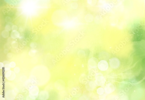 © Svetlana, Fototapeta premium spring background - abstract banner - green blurred bokeh lights