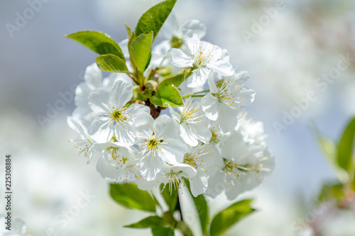 © Victoria Kondysenko, Fototapeta premium Spring background art with white cherry blossom