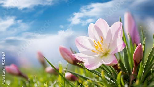 © Kartik, Fototapeta premium Spring background; fresh flower on blue backgroun
