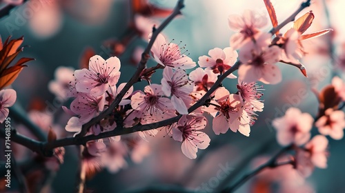 Fototapeta premium Spring background showing the beauty of nature, cherry blossom branch,...